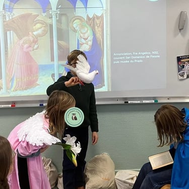 De l’Annonciation à la Fuite en Égypte, cet atelier propose une immersion artistique et ludique dans les grands épisodes de la naissance de Jésus. À travers la lecture d'extraits des Evangiles et de l'analyse d'œuvres d’art – peintures, sculptures, vitraux ou enluminures – du Moyen Âge à nos jours, les enfants découvrent comment les artistes ont représenté cette histoire fondatrice.